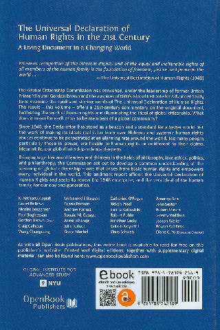 Contents: The Long and Influential Life of the Universal Declaration of Human Rights -- The Evolving Understanding of Rights -- Limitations and Derogations -- Social and Economic Rights -- Responsibility for Human Rights -- Implementation of Human Rights -- Human Rights and a Global Ethic.