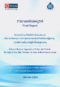 | 246 30 ^aรายงานฉบับสมบูรณ์ ฉบับย่อ โครงการศึกษาวิจัยเพื่อจัดทำข้อเสนอแนะนโยบายหรือมาตรการเพื่อคุ้มครองและส่งเสริมสิทธิของผู้สูงอายุ: กรณีการเลือกปฏิบัติในผู้สูงอายุ
