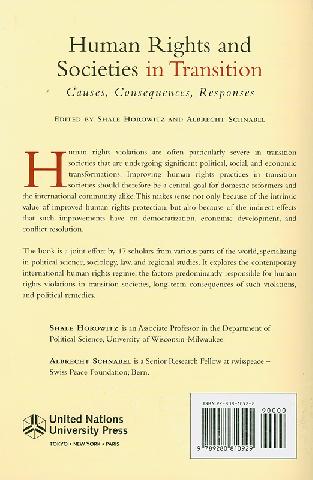 Human rights and societies in transition : causes, consequences, responses edited by Shale Horowitz and Albrecht Schnabel