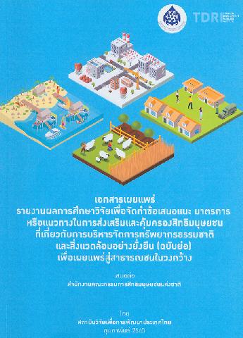 | 246 30 ^aเอกสารเผยแพร่ รายงานผลการศึกษาวิจัยเพื่อจัดทำข้อเสนอแนะ มาตรการหรือแนวทางในการส่งเสริมและคุ้มครองสิทธิมนุษยชนที่เกี่ยวกับการบริหารจัดการทรัพยากรธรรมชาติและสิ่งแวดล้อมอย่างยั่งยืน (ฉบับย่อ) เพื่อเผยแพร่สู่สาธารณชนในวงกว้าง