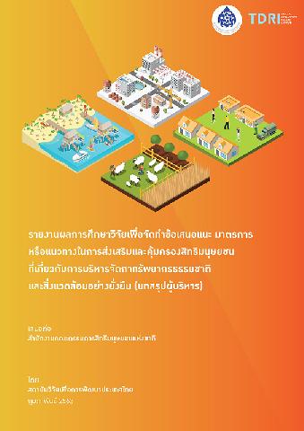 | 246 30 ^aรายงานผลการศึกษาวิจัยเพื่อจัดทำข้อเสนอแนะ มาตรการหรือแนวทางในการส่งเสริมและคุ้มครองสิทธิมนุษยชนที่เกี่ยวกับการบริหารจัดการทรัพยากรธรรมชาติและสิ่งแวดล้อมอย่างยั่งยืน (บทสรุปผู้บริหาร)
