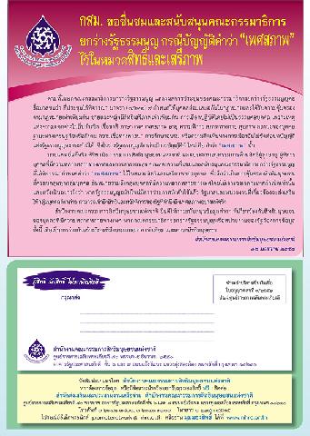-- กสม. ขอชื่นชมและสนับสนุนคณะกรรมาธิการยกร่างรัฐธรรมนูญ กรณี บัญญัติคำว่า "เพศสภาพ" ไว้ในหมวดสิทธิและเสรีภาพ.