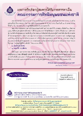 -- ผลการคัดเลือกผู้สมควรได้รับการสรรหาเป็นคณะกรรมการสิทธิมนุษยชนแห่งชาติ.