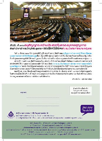 -- สนช. เห็นชอบอนุสัญญาระหว่างประเทศคุ้มครองบุคคลสูญหายด้านสำนักงานข้าหลวงใหญ่สิทธิมนุษยชนฯ แถลงผิดหวังไทยพับร่างกม. ป้องกันการทรมานและอุ้มหาย .