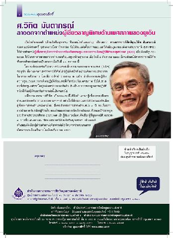 -- ศ.วิทิต มันตาภรณ์ ลาออกจากตำแหน่งผู้เชี่ยวชาญพิเศษด้านเพศสภาพของยูเอ็น.