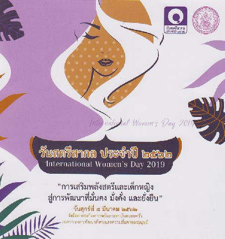 การจัดงานวันสตรีสากล ประจำปี 2562 "การเสริมสร้างพลังสตรีและเด็กหญิง สู่การพัฒนาที่มั่นคง มั่งคั่ง และยั่งยืน" วันศุกร์ที่ 8 มีนาคม 2562