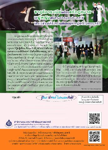 -- ซาอุดีอาระเบียเตรียมแก้กฎหมายให้ผู้หญิงเดินทางออกนอกประเทศได้ โดยไม่ต้องได้รับความยินยอมจากผู้ชายในครอบครัว.