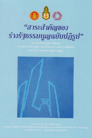 สาระสำคัญของร่างรัฐธรรมนูญฉบับปฏิรูป : เอกสารประกอบการสัมมนาการเผยแพร่ความรู้ความเข้าใจและรับฟังความคิดเห็นของประชาชนต่อร่างรัฐธรรมนูญ ถวิลวดี บุรีกุล ...[และคนอื่น ๆ]
