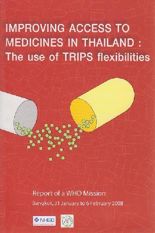 รายงานของคณะผู้เชี่ยวชาญจากองค์การอนามัยโลก (WHO) สำนักงานโครงการพัฒนาแห่งสหประชาชาติ (UNDP) องค์การประชุมสหประชาชาติว่าด้วยการค้าและการพัฒนา (UNDTAD) และองค์การการค้าโลก (WTO) เรื่อง การพัฒนาการเข้าถึงยาในประเทศไทย: การใช้ข้อยืดหยุ่นต่างๆของข้อตกลงทริปส์ (กรุงเทพฯ 31 มกราคม-6 กุมภาพันธ์ 2551) เรื่อง การพัฒนาการเข้าถึงยาในประเทศไทย: การใช้ข้อยืดหยุ่นต่างๆของข้อตกลงทริปส์ (กรุงเทพฯ 31 มกราคม-6 กุมภาพันธ์ 2551)