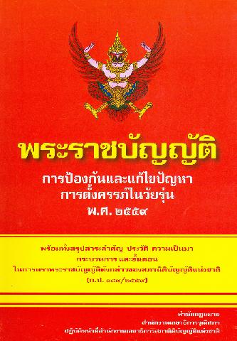 พระราชบัญญัติการป้องกันและแก้ไขปัญหาการตั้งครรภ์ในวัยรุ่น พ.ศ. 2559 : พร้อมทั้งบทสรุปสาระสำคัญ ประวัติ ความเป็นมา กระบวนการ และขั้นตอนในการตราพระราชบัญญัติดังกล่าวของสภานิติบัญญัติแห่งชาติ (ก.ป. 1892559) กลุ่มงานพัฒนากฎหมาย สำนักกฎหมาย สำนักงานเลขาธิการวุฒิสภา