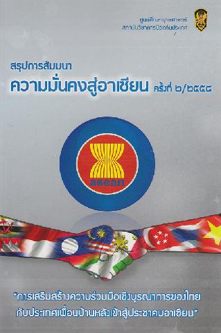 สรุปการสัมมนาความมั่นคงอาเซียน ครั้งที่ 2/2558 / ศูนย์ยุทธศาสตร์ สถาบันวิชาการป้องกันประเทศ.