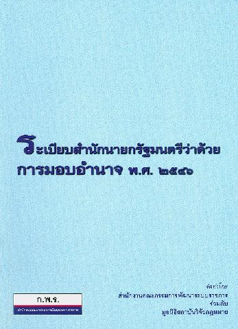 ระเบียบสำนักนายกรัฐมนตรีว่าด้วยการมอบอำนาจ พ.ศ. 2546 สำนักงานคณะกรรมการพัฒนาระบบราชการร่วมกับมูลนิธิสถาบันวิจัยกฎหมาย