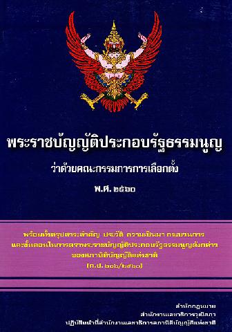 พระราชบัญญัติประกอบรัฐธรรมนูญว่าด้วยคณะกรรมการการเลือกตั้ง พ.ศ. 2560 : พร้อมทั้งสรุปสาระสำคัญ ประวัติ ความเป็นมา กระบวนการ และขั้นตอนในการตราพระราชบัญญัติประกอบรัฐธรรมนูญดังกล่าวของสภานิติบัญญัติแห่งชาติ (ก.ป. 2062560) สำนักกฎหมาย สำนักงานเลขาธิการวุฒิสภา ปฏิบัติหน้าที่สำนักงานเลขาธิการสภานิติบัญญัติแห่งชาติ