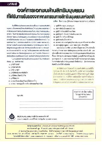 -- องค์การเอกชนด้านสิทธิมนุษยชน ที่ได้รับการรับรองจากคณะกรรมการสิทธิมนุษยชนแห่งชาติ.