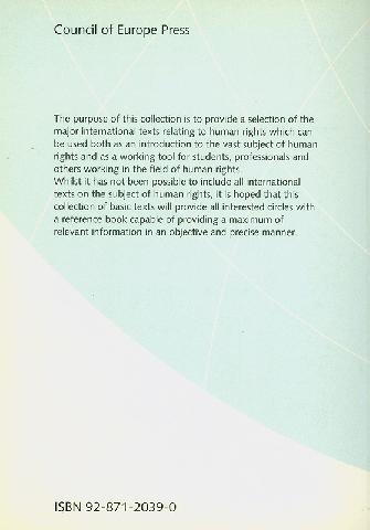 Human rights in international law : basic texts/ Council of Europe Press
