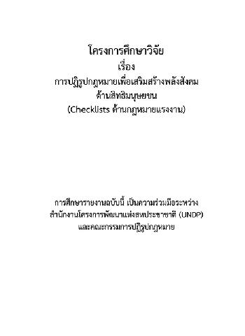 โครงการศึกษาวิจัย เรื่อง การปฏิรูปกฎหมายเพื่อเสริมสร้างพลังสังคมด้านสิทธิมนุษยชน (Checklist ด้านกฎหมายแรงงาน) / สำนักงานโครงการพัฒนาแห่งสหประชาชาติ (UNDP) และคณะกรรมการปฏิรูปกฎหมาย