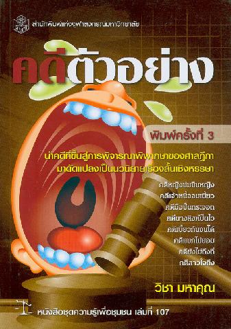 | รายการใกล้เคียง ผู้แต่ง [วิชา มหาคุณ] หัวเรื่อง [การพิจารณาและตัดสินคดี] หัวเรื่อง [คดีและการสู้คดี] |