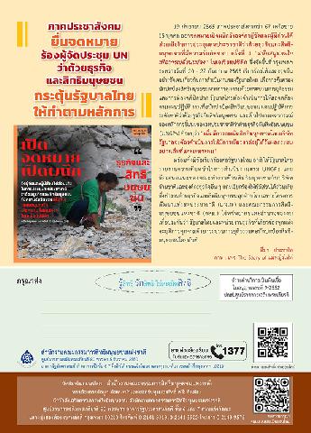 -- ภาคประชาสังคมยื่นจดหมายร้องผู้จัดประชุม UN ว่าด้วยธุรกิจและสิทธิมนุษยชนกระตุ้นรัฐบาลไทยให้ทำตามหลักการ.