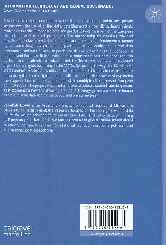 Summary: This book considers contested responsibilities between the public and private sectors over the use of online data, detailing exactly how digital human rights evolved in specific European states and gradually became a part of the European Union framework of legal protections. The author uniquely examines why and how European lawmakers linked digital data protection to fundamental human rights, something heretofore not explained in other works on general data governance and data privacy. In particular, this work examines the utilization of national and European Union institutional arrangements as a location for activism by legal and academic consultants and by first-mover states who legislated digital human rights beginning in the 1970s. By tracing the way that EU Member States and non-state actors utilized the structure of EU bodies to create the new norm of digital human rights, readers will learn about the process of expanding the scope of human rights protections within multiple dimensions of European political space. The project will be informative to scholar, student, and layperson, as it examines a new and evolving area of technology governance the human rights of digital data use by the public and private sectors. Rebekah Dowd is an Assistant Professor of Political Science at Midwestern University in Texas. Rebekahs research focuses on human rights within data policy, the online behavior of individuals and states, and policy decision-making by European politicians. Dr. Dowd teaches courses in global studies, international relations, comparative and foundational politics, European politics, and international political economy.
