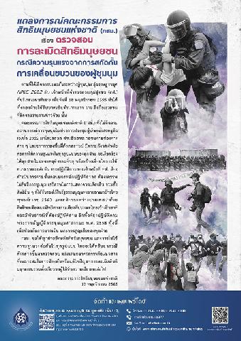 -- แถลงการณ์คณะกรรมการสิทธิมนุษยชนกรณีความรุนแรงจากการสกัดกั้นการเคลื่อนขบวนของผู้ชุมนุม.