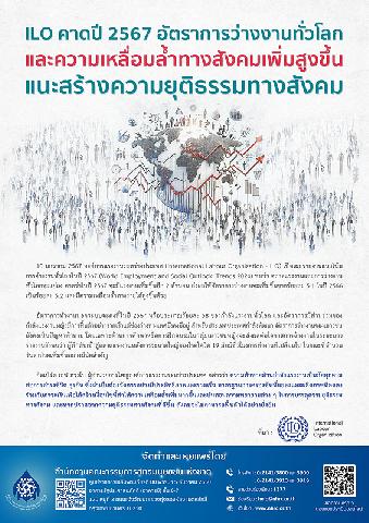 -- ILO คาดปี 2567 อัตราการว่างงานทั่วโลกและความเหลื่อมล้ำทางสังคมเพิ่มสูงขึ้น แนะสร้างความยุติธรรมทางสังคม.