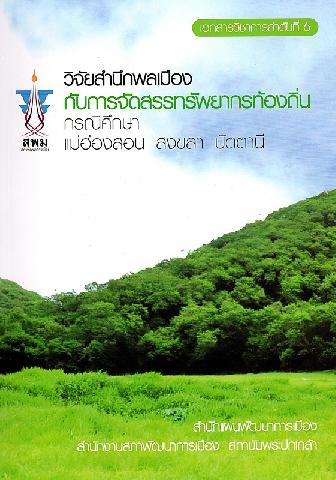 วิจัยสำนึกพลเมืองกับการจัดสรรทรัพยากรท้องถิ่น : กรณีศึกษาแม่ฮ่องสอน สงขลา ปัตตานี สำนักแผนพัฒนาการเมือง สถาบันพระปกเกล้า