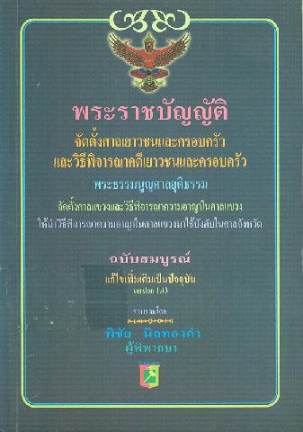 | รายการใกล้เคียง หัวเรื่อง [ธรรมนูญศาลยุติธรรม] หัวเรื่อง [พระราชบัญญัติจัดตั้งศาลเยาวชนและครอบครัวและวิธีพิจารณาคดีเยาวชนและครอบครัว พ.ศ. 2534] หัวเรื่อง [พระราชบัญญัติจัดตั้งศาลแขวงและวิธีพิจารณาความอาญาในศาลแขวง พ.ศ. 2499] |