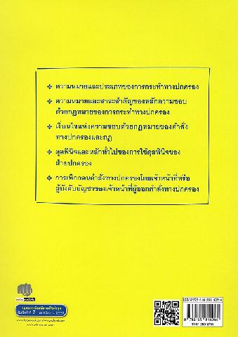 505 0 ^aบทที่ 1 ความหมายและประเภทของการกระทำทางปกครอง -- ^tบทที่ 2 ความหมายและสาระสำคัญของหลักความชอบด้วยกฎหมายของการกระทำทางปกครอง -- ^tบทที่ 3 เงื่อนไขแห่งความชอบด้วยกฎหมายของคำสั่งทางปกครองและกฎ -- ^tบทที่ 4 ดุลพินิจและหลักทั่วไปของการใช้ดุลพินิจของฝ่ายปกครอง -- ^tบทที่ 5 การเพิกถอนคำสั่งทางปกครองโดยเจ้าหน้าที่หรือผู้บังคับบัญชาของเจ้าหน้าที่ผู้ออกคำสั่งทางปกครอง