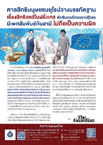 -- ศาลสิทธิมนุษยชนยุโรปวางบรรทัดฐาน เรื่องสิทธิสตรีในฝรั่งเศส ตัดสินกรณีภรรยาปฏิเสธมีเพศสัมพันธ์กับสามีไม่ถือเป็นความผิด.