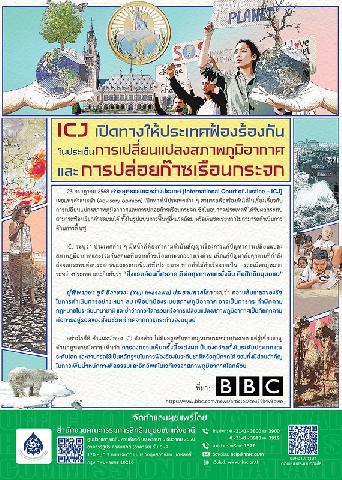 -- ICJ เปิดทางให้ประเทศฟ้องร้องกันในประเด็นการเปลี่ยนแปลงสภาพภูมิอากาศและการปล่อยก๊าซเรือนกระจก.