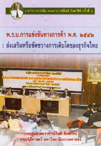 งานวิชาการรำลึก ศาสตราจารย์จิตติ ติงศภัทิย์ เรื่อง พ.ร.บ.การแข่งขันทางการค้า พ.ศ. 2542 :ส่งเสริมหรือขัดขวางการเติบโตของธุรกิจไทย (ครั้งที่ 8 : 2546 : มหาวิทยาลัยธรรมศาสตร์)