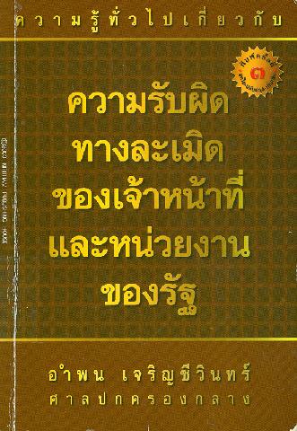 | รายการใกล้เคียง ผู้แต่ง [อำพน เจริญชีวินทร์] หัวเรื่อง [ความรับผิด (กฎหมาย)] หัวเรื่อง [พระราชบัญญัติความรับผิดทางละเมิดของเจ้าหน้าที่ พ.ศ. 2539] |