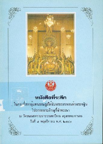 หนังสือที่ระลึกในการที่สภาผู้แทนราษฎรได้รับพระราชทานผ้าพระกฐินไปถวายพระภิกษุที่จำพรรษา ณ วัดชนะสงครามราชวรมหาวิหาร กรุงเทพมหานคร วันที่ 5 พฤศจิกายน พ.ศ. 2545 / กลุ่มงานผลิตเอกสาร สำนักประชาสัมพันธ์ สำนักงานเลขาธิการสภาผู้แทนราษฎร