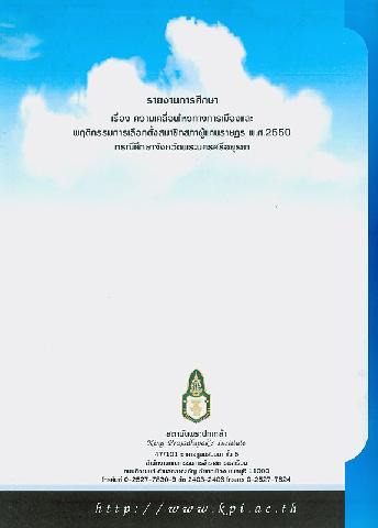 รายงานการศึกษาเรื่อง ความเคลื่อนไหวทางการเมืองและพฤติกรรมการเลือกตั้งสมาชิกสภาผู้แทนราษฏร พ.ศ. 2550 กรณีศึกษาจังหวัดพระนครศรีอยุธยา / ปัทมา สูบกำปัง