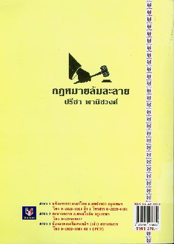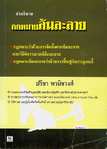 คำอธิบายกฎหมายล้มละลาย : กฎหมายว่าด้วยการจัดตั้งศาลล้มละลายและวิธีพิจารณาคดีล้มละลายและกฎหมายล้มละลายว่าด้วยการฟื้นฟูกิจการของลูกหนี้ (พ.ศ.2548) / ปรีชา พานิชวงศ์