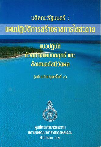 มติคณะรัฐมนตรี : แผนปฏิบัติการสร้างราชการใสสะอาด ประจำปี 2546 / สถาบันพัฒนาข้าราชการพลเรือน สำนักงาน ก.พ.