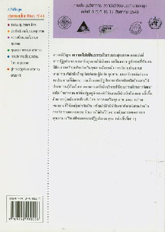 ใช้เป็นเอกสารประกอบการประชุมวิชาการสถาบันวิจัยระบบสาธารณสุข ครั้งที่ 3 ภูมิปัญญาประชาคมสู่สุขภาพประชาชาติไทยระหว่างวันที่ 15-17 สิงหาคม 2543 ณ ศูนย์นิทรรศการและการประชุมไบเทค กรุงเทพมหานคร