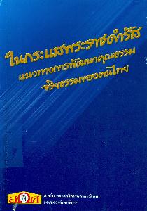 ในกระแสพระราชดำรัส : แนวทางการพัฒนาคุณธรรมจริยธรรมของคนไทย / สำนักวิจัยและพัฒนาการศึกษา สำนักงานเลขาธิการสภาการศึกษา ; ผู้วิจัย, ฟ้ามุ่ย เรืองเลิศบุญ ... [และคนอื่นๆ]