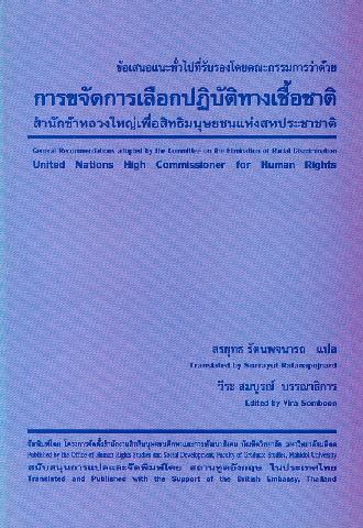 | 245 00 ^aข้อเสนอแนะทั่วไปที่รับรองโดยคณะกรรมการว่าด้วยการขจัดการเลือกปฏิบัติทางเชื้อชาติสำนักข้าหลวงใหญ่เพื่อสิทธิมนุษยชนแห่งสหประชาชาติ /^cสรยุทธ รัตนพจนารถ, แปล ;วีระ สมบูรณ์, บรรณาธิการ