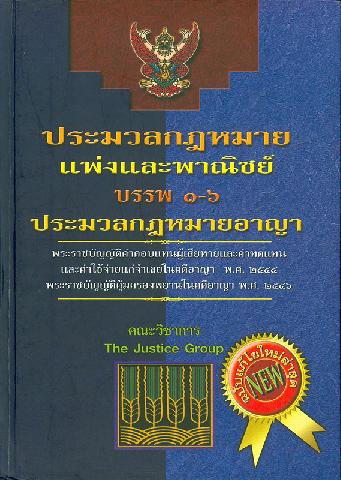 ประมวลกฎหมายแพ่งและพาณิชย์บรรพ 1-6 ประมวลกฎหมายอาญา : พร้อมพระราชบัญญัติค่าตอบแทนผู้เสียหายและค่าทดแทนและค่าใช้จ่ายแก่จำเลยในคดีอาญา พ.ศ. 2544 และพระราชบัญญัติคุ้มครองพยานในคดีอาญา พ.ศ. 2546 [รวบรวมโดย] คณะวิชาการ The Justice Group
