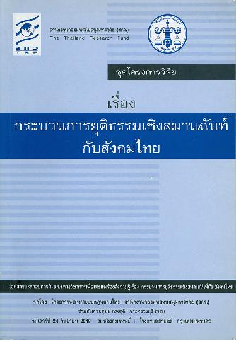 Contents: บทบาทของ สกว.ในการพัฒนาการนำกระบวนการยุติธรรมเชิงสมานฉันท์มาใช้ในสังคมไทย/rกิตติพงษ์ กิตติยารักษ์ -- วรรณกรรมปริทัศน์เรื่อง "กระบวนการยุติธรรมเชิงสมานฉันท์ : การคืน "อำนาจ" แก่เหยื่ออาชญากรรมและชุมชน" -- "กระบวนการยุติธรรมเชิงสมานฉันท์กับวัฒนธรรมการระงับข้อพิพาทในท้องถิ่นไทย" -- "กระบวนการยุติธรรมเชิงสมานฉันท์ : การนำกระบวนการยุติธรรมเชิงสมานฉันท์มาใช้ในสังคมไทย" -- Restrorative Justice in Thailand/rกิตติพงษ์ กิตยารักษ์ -- Restrorative Justice : Family and Community Group Conference (FCGC) in Thailand/rวันชัย รุจนวงศ์ -- Restrorative Justice in Thailand-Trends and Development in Restrorative Justice/rDanial W. Van Ness.