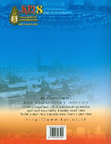 เอกสารสรุปการประชุมวิชาการสถาบันพระปกเกล้า ครั้งที่ 8 ประจำปี 2549 วันที่ 3-5 พฤศจิกายน 2549 ณศูนย์ประชุมสหประชาชาติ ถนนราชดำเนินนอก กรุงเทพมหานคร
