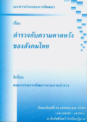 เอกสารประกอบการสัมมนาเรื่อง ตำรวจกับความคาดหวังของสังคมไทย วันพฤหัสบดีที่ 18 มกราคม พ.ศ. 2550 เวลา 09.00 - 16.30 น. ณ ตึกสันติไมตรี ทำเนียบรัฐบาล จัดโดย คณะกรรมการพัฒนาระบบงานตำรวจ