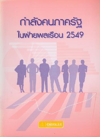 กำลังคนภาครัฐในฝ่ายพลเรือน 2549 กลุ่มงานเลขานุการคณะกรรมการกำหนดเป้าหมายและนโยบายกำลังคนภาครัฐ (คปร.) ; สำนักพัฒนาระบบจำแนกตำแหน่งและค่าตอบแทน ; สำนักงาน ก.พ.