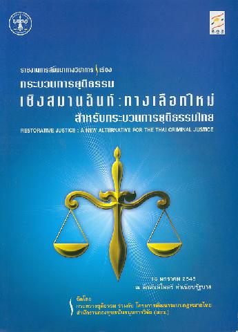 รายงานการสัมมนาทางวิชาการเรื่อง กระบวนการยุติธรรมเชิงสมานฉันท์ : ทางเลือกใหม่สำหรับกระบวนการยุติธรรมไทย / จัดโดย กระทรวงยุติธรรม ร่วมกับ โครงการพัฒนาระบบกฎหมายไทย สำนักงานกองทุนสนับสนุนการวิจัย (สกว.)