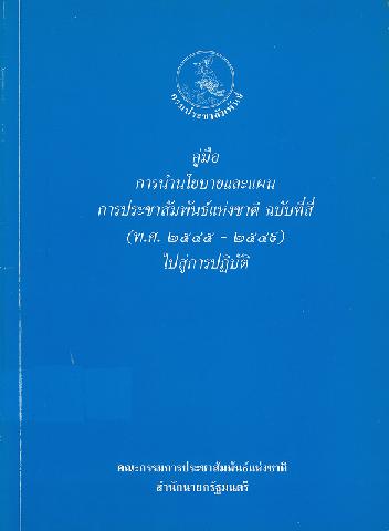 คู่มือการกำหนดนโยบายและแผนการประชาสัมพันธ์แห่งชาติ ฉบับที่สี่ (พ.ศ. 2545 - 2549) ไปสู่การปฏิบัติ / คณะกรรมการประชาสัมพันธ์แห่งชาติ สำนักนายกรัฐมนตรี