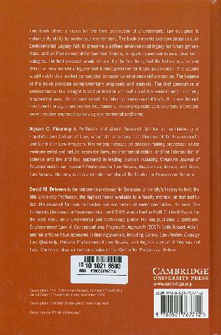 Contents: The case for the National Environmental Legacy Act/ Alyson C. Flournoy -- The necessity of procedural reform/ Sidney Shapiro -- Shifting baselines and backsliding benchmarks : the need for the National Environmental Legacy Act to address the ecologies of restoration, resilience, and reconciliation/ Thomas T. Ankersen and Kevin E. Regan -- Valuing nature : the challenge of the National Environmental Legacy Act/ Mark T. Brown and Mary Jane Angelo -- Citizen science and the next generation of environmental law/ Christine Overdevest and Brian Mayer -- Creating National Environmental Legacy Act information : the double standard/ Walter A. Rosenbaum -- The Constitution and our debt to the future/ Rena Steinzor -- An environmental competition statute/ David M. Driesen -- Climate change, federalism, and promoting technological change/ David E. Adelman -- The iUtility/ Joseph P. Tomain -- Environmental patriotism/ Christine A. Klein.