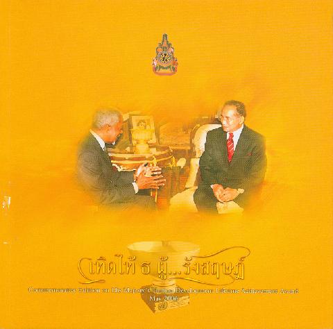500 ^aหนังสือที่ระลึกพิธีทูลเกล้าฯ ถวายรางวัลเกียรติยศ "รางวัลความสำเร็จสูงสุดด้านการพัฒนามนุษย์ ของโครงการพัฒนาแห่งสหประชาชาติ" แด่พระบาทสมเด็จพระเจ้าอยู่หัว พฤษภาคม พ.ศ. 2549