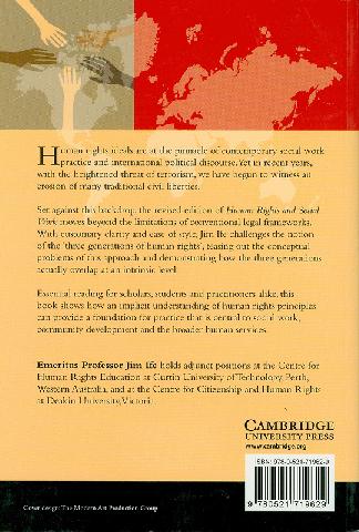 Contents: Human rights in a globalised world -- Human rights: beyond traditional formulations -- Public and private humanrights -- Culture and human rights -- Human rights andhuman needs -- Human rights and obligations -- Ethics andhuman rights -- Participation in the human rights discourse -- Constructing human rights for social work practice -- Achieving human rights through social work practice -- Respecting human rights in social work practice