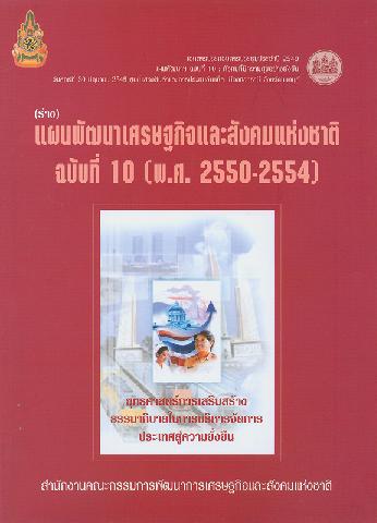 | 245 00 ^a(ร่าง) แผนพัฒนาเศรษฐกิจและสังคมแห่งชาติ ฉบับที่ 10 (พ.ศ. 2550-2554) /^cสำนักงานคณะกรรมการพัฒนาการเศรษฐกิจและสังคมแห่งชาติ